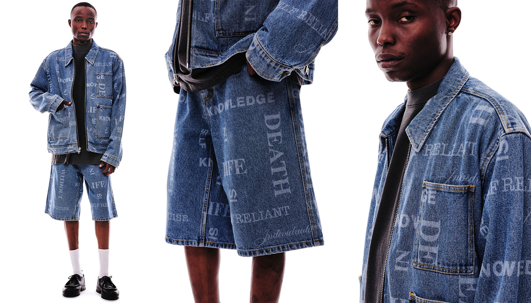 Knowledge Laser Print Big Boy Shorts - Indigo Denim